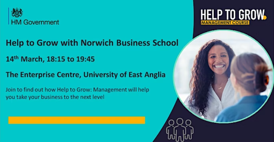 Help to Grow with Norwich Business School – open event on Tuesday 14th March, 18:15 to 19:45 at The Enterprise Centre, UEA