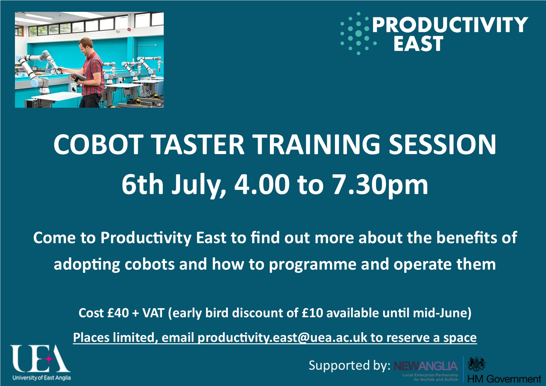 ‘Cobot Taster Event, Productivity East, 6th July 16:00 – 19:30